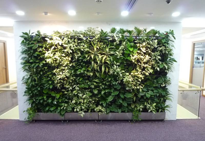 見た目も良く色々な植物でデザインする事が出来ます。建物に美しい緑の壁を演出します。また、灌水装置も付けるのでメンテナンス性に優れ植物の入れ替えにも対応し易いです。