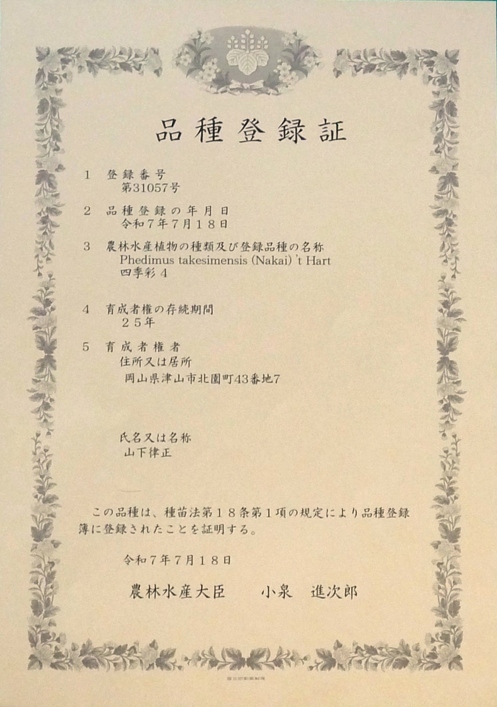 四季彩7はタケシマキリンソウ突然変異種の中でも特異的な特徴を持つ品種です。