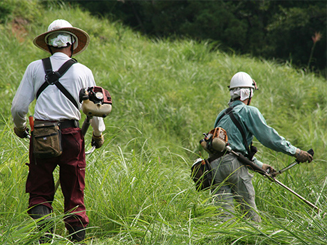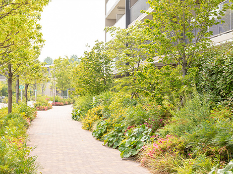 企業・マンション等の緑地計画から開発・設計・施工、その後の管理などにもご対応いたします。学校、公園、市民会館や福祉施設、運動場などの公共施設の植栽の維持管理も行っています。街路樹の剪定、花壇の管理や草刈りなど街路整備もお任せください。また、個人邸の造園工事、庭園管理も承ります。
